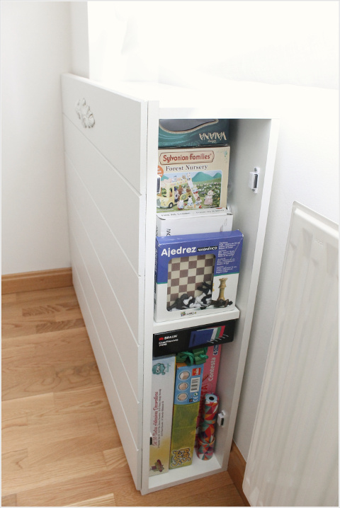 No bastaba con la columna, en medio de la pared había un radiador. Si mi idea hubiese sido dejar el espacio para almacenaje abierto ni lo habría pensado, pero el problema era que yo quería que estuviese cerrado para que se viese recogido.