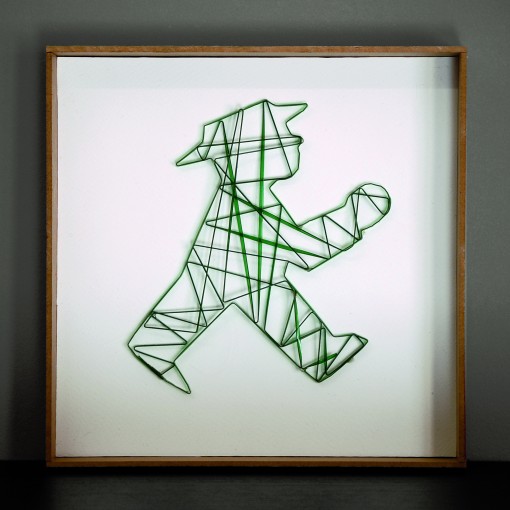 Característica silueta del ampelmann berlinés realizada en PET proveniente de botellas y posteriormente moldeado.